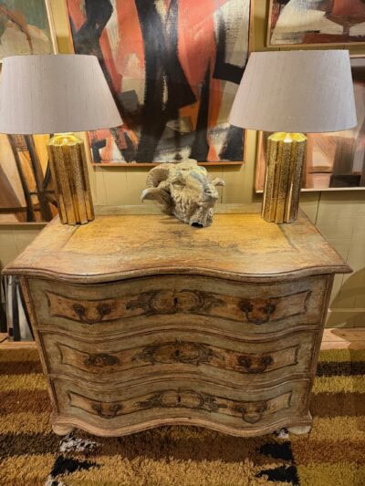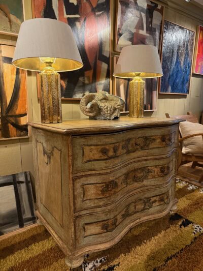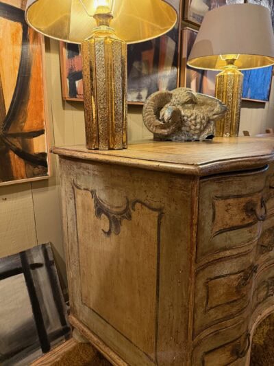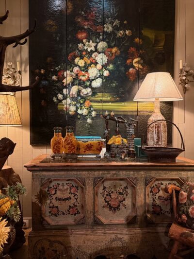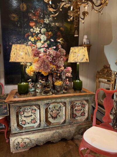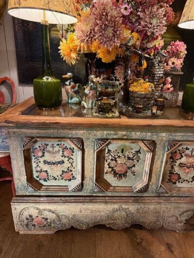 Comptoir de magasin en bois peint décor Alpin d’époque XIXe